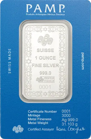Objevte nadčasovou hodnotu stříbra s 1oz stříbrným slitkem | PAMP | Davidova hvězda. Tyto pečlivě vyrobené slitky z ryzího stříbra o ryzosti 999,9/1000 představují eleganci a bezpečí. Tyto 31,1035g stříbrné slitky, vyrobené jednou z nejdůvěryhodnějších rafinérií, PAMP Switzerland, jsou ideální pro investory, kteří chtějí diverzifikovat nebo rozšířit své portfolio drahých kovů.