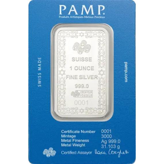 1 oz stříbrný slitek | PAMP | Davidova hvězda